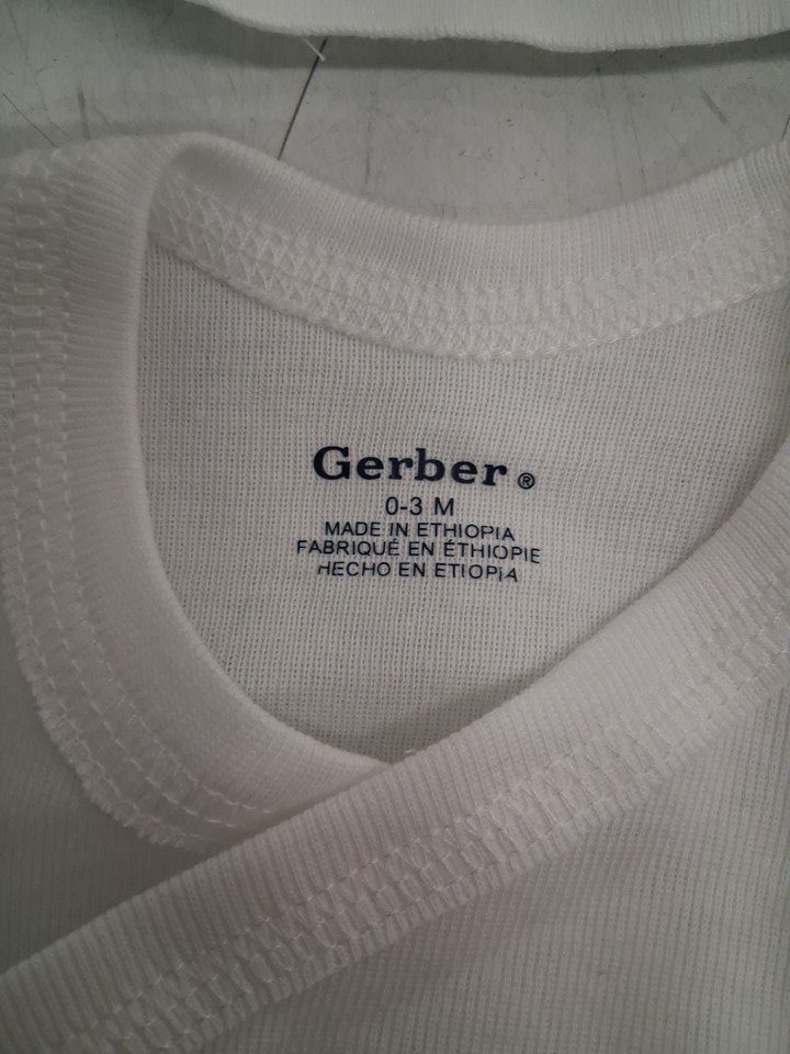 2PK INFANTS GERBER LONG SLEEVE SIDE SNAP SHIRTS - 0-3M - WHITE
