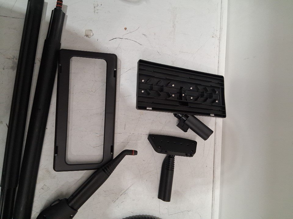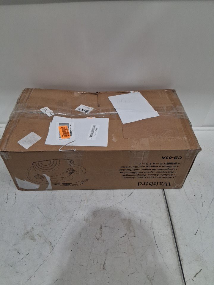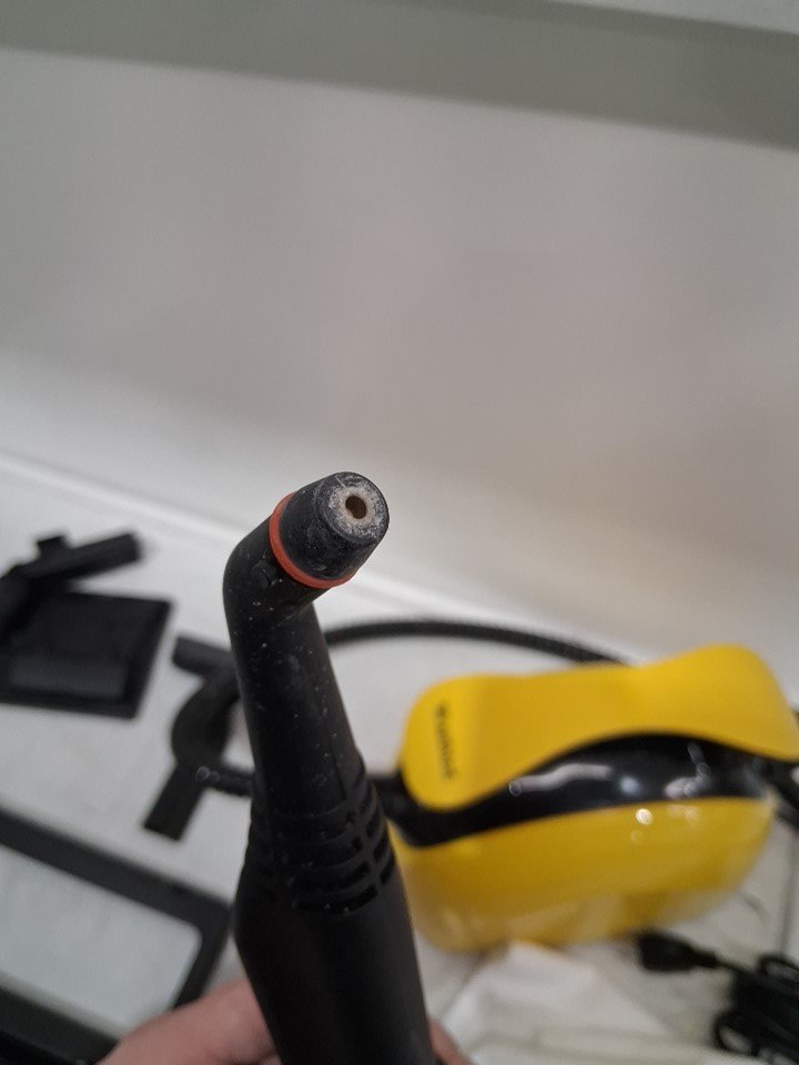 Tested for power, working. Signs of light use, residue on spray nozzle. Missing scrub bushes and a steam head/pads. See photos