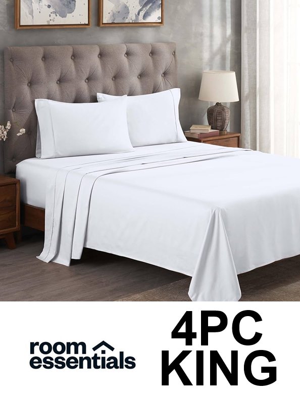 4pc Room Essentials Easy Care Cotton Blend Sateen Sheet Set - king - WHITE