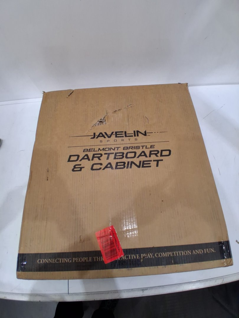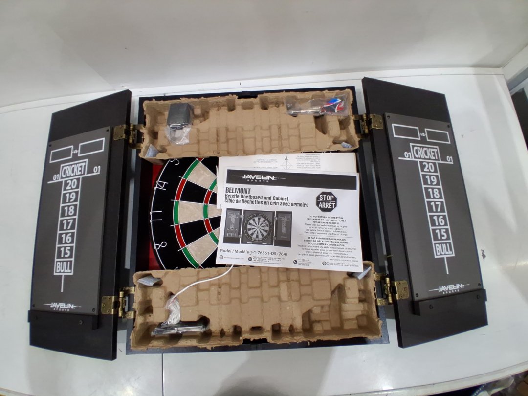 EASTPOINT SPORTS JAVELIN JOUST DARTBOARD AND CABINET - 18" - DARK BROWN (MODEL: 1-1-76861-DS)