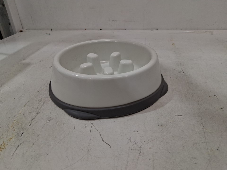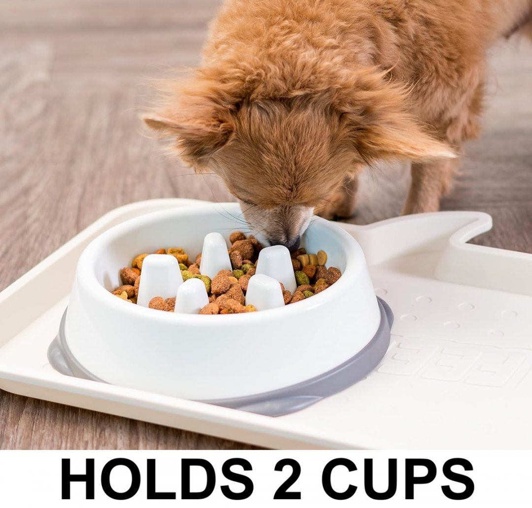 iris usa slow feeder anti-slip dog bowl - 2 cups - white/gray - (model: uso-442)