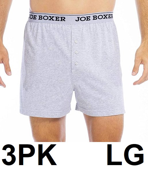 3PK MEN'S JOE BOXER CLASSIC-FIT, COTTON, LOOSE BOXERS With 3-BUTTON FLY - extra large - GREY