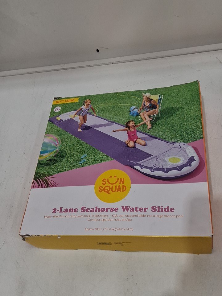 KIDS SUN SQUAD 2-LANE SEAHORSE WATER SLIDE - 18FT LONG - PURPLE