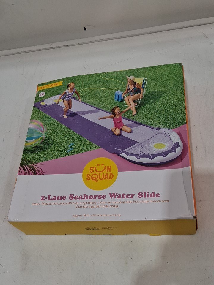 KIDS SUN SQUAD 2-LANE SEAHORSE WATER SLIDE - 18FT LONG - PURPLE