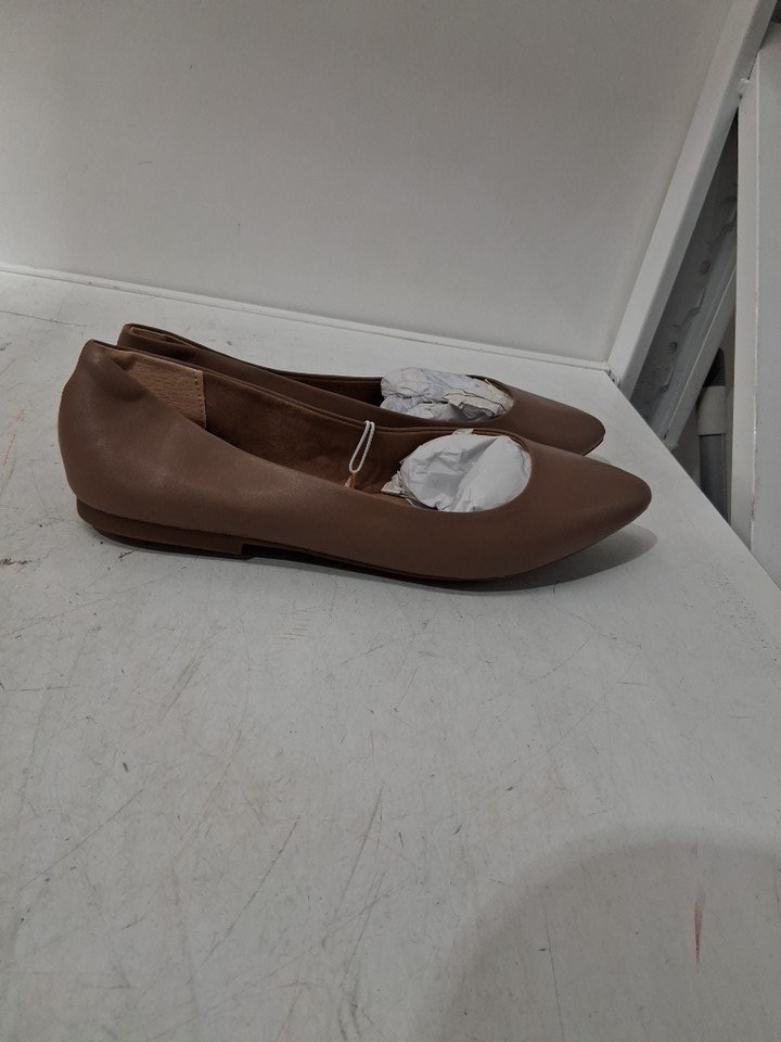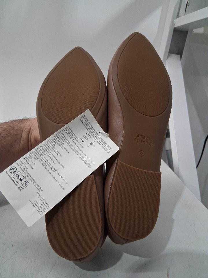 WOMENS' AMAZON ESSENTIALS POINTED-TOE BALLET FLAT SHOE - 12 - light brown