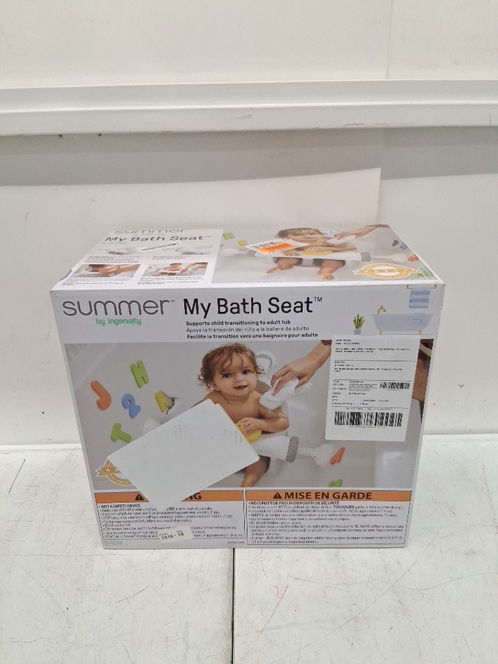 Summer by Ingenuity My Bath Seat Infant Baby Bathtub Seat for Sit-Up Bathing with Backrest Support and Suction Cups for Stability - 5M TO 10M - White/Grey - (model: 19620/pl112524))
