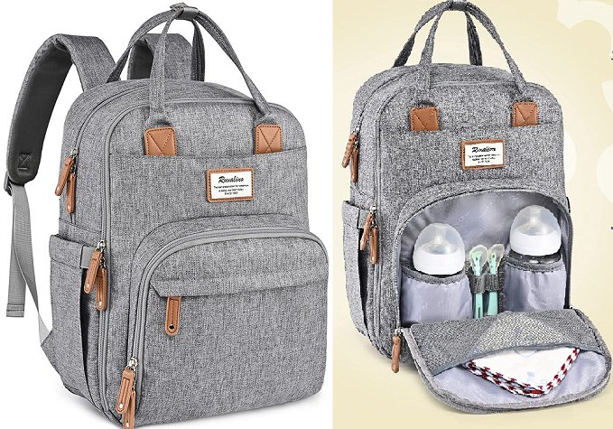 RUVALINO DIAPER BAG BACKPACK, MULTI-FUNCTIONAL TRAVEL MATERNITY/PATERNITY BACKPACK, WATERPROOF, 11.8" x 16.5" - GREY (style: yw168)