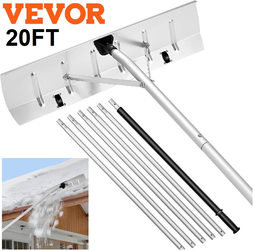 VEVOR SNOW ROOF RAKE - 26" ALUMINUM BLADE - 7.5FT TO 20FT DJUSTABLE SNOW SCRAPER WITH WHEELS - ANTI SLIP HANDLE FOR HOUSE ROOFTOP SNOW OR LEAVE REMOVAL (MODEL: CY-SF05)