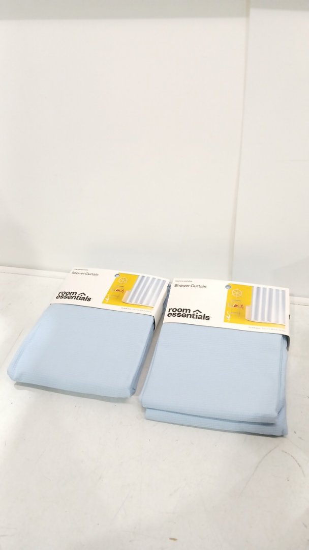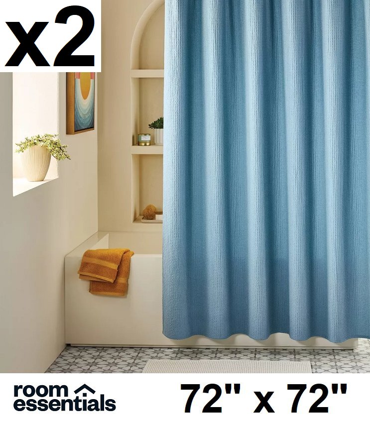 2 Room Essentials Fabric Waffle Weave Shower Curtain - 72" x 72" - Light blue (model: 064 18 7324)