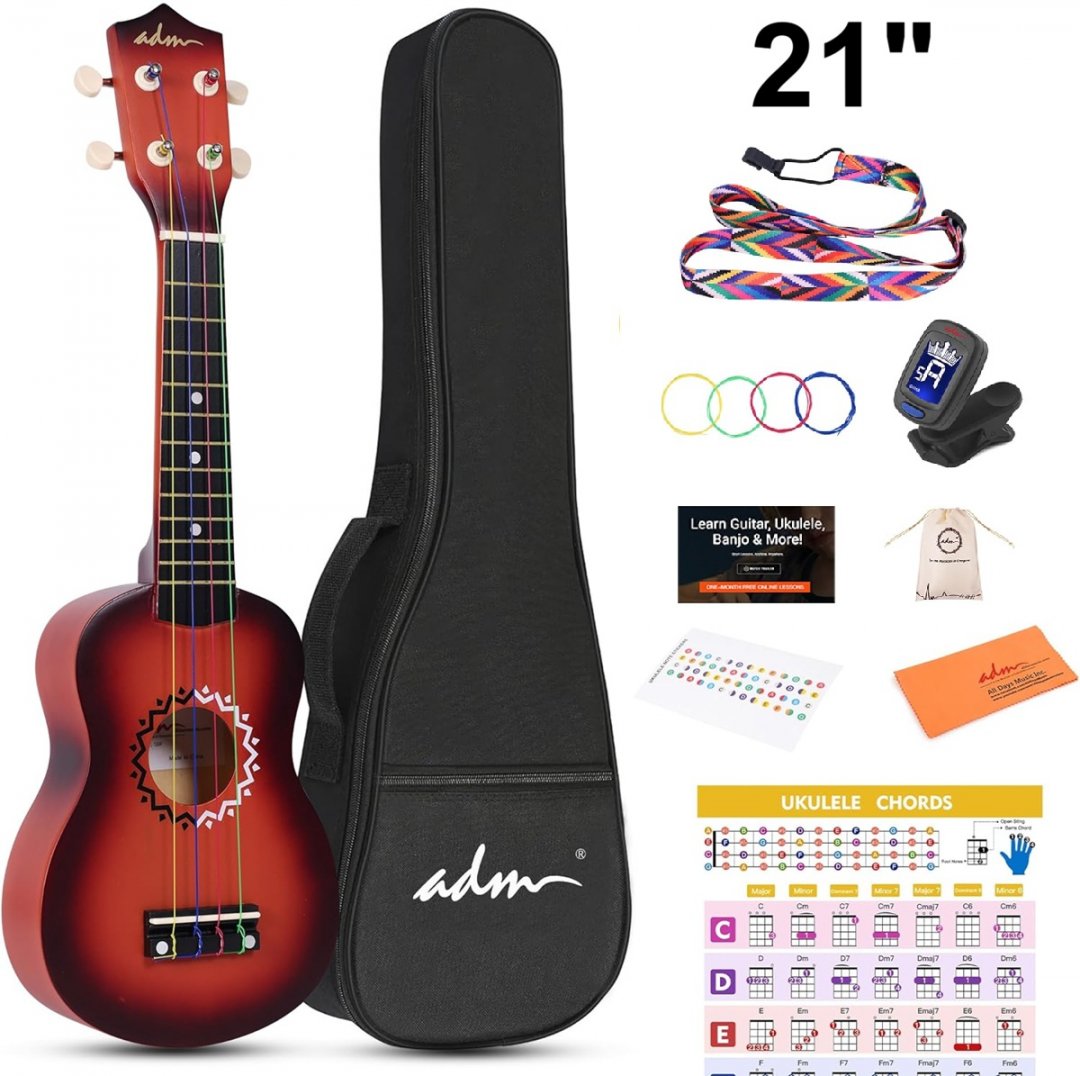 KIDS ADM Soprano Ukulele Kit FOR BEGINNERS - 21" - BROWNBUST