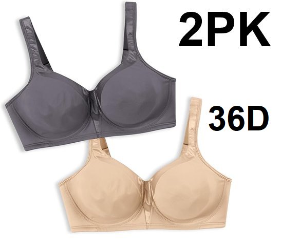 2PK Woman's Playtex 18 Hour Silky Soft Smoothing Wireless Bra - 36D- Grey/beige (style: 4803)