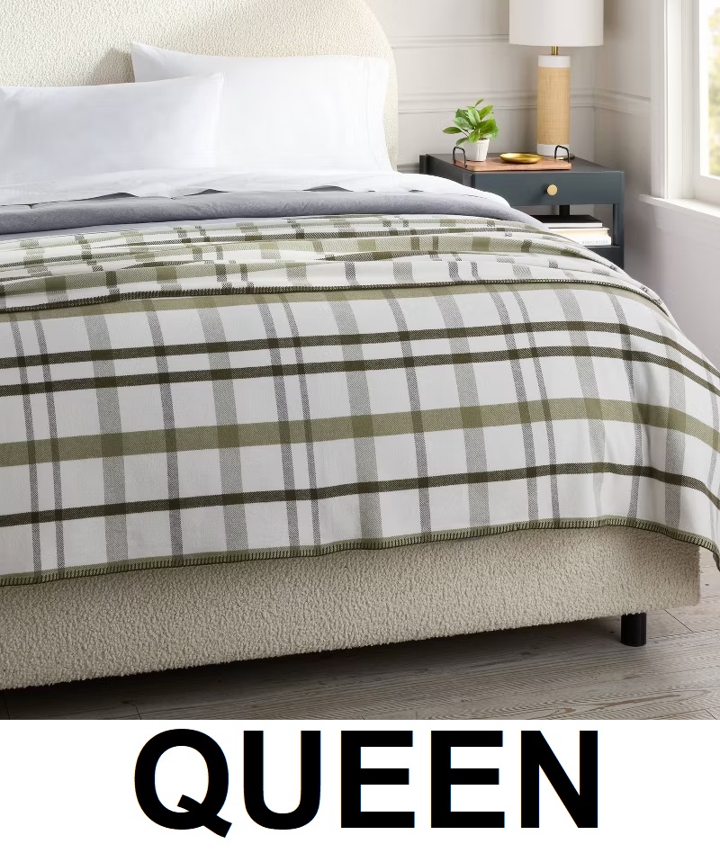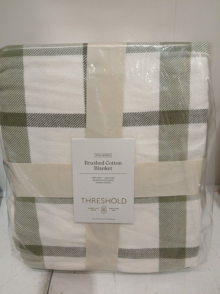 Threshold Brushed Cotton Blanket Plaid - QUEEN - GREEN/WHITE