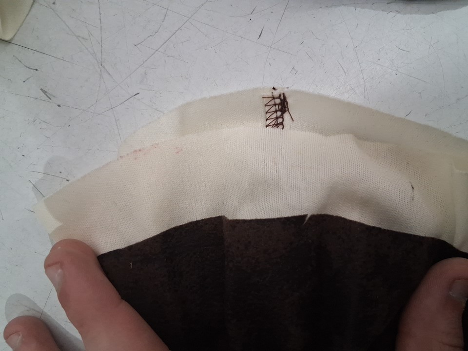There are very minor scuff marks on one of the hand/wrist pieces from previous use, they should come out after being washed.