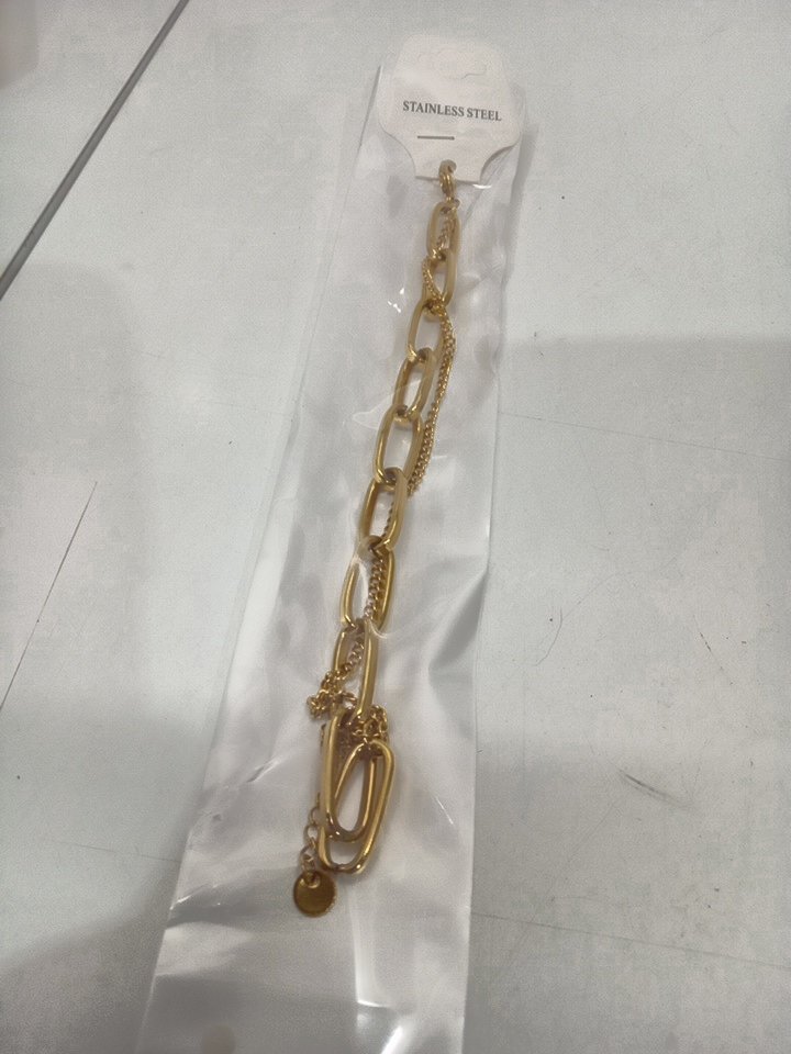 WOMENS JCO DOUBLE layered paperclip chain bracelet - stainless steel gold