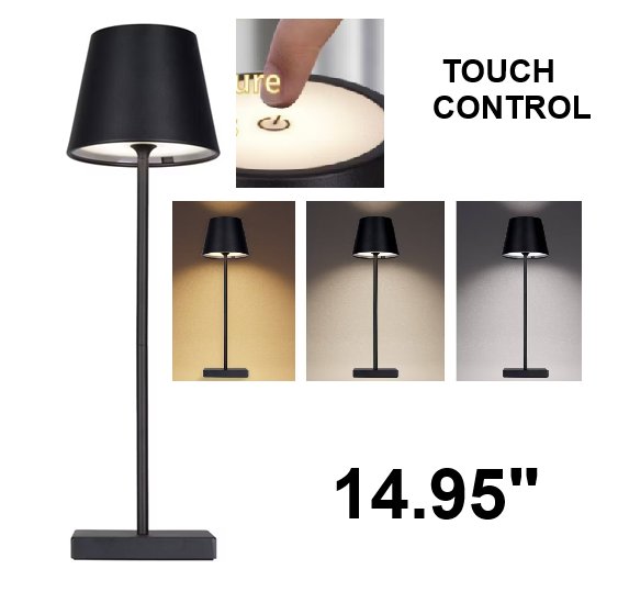 Cresswell Lighting Cordless Rechargeable Stick Table Lamp - Touch Sensor, 3 Color Modes, DimmablE - 14.95" - BLACK