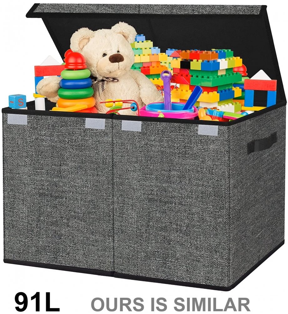 collapsible storage box organizer for toys - 24.5" x 13" x 16" - grey/black