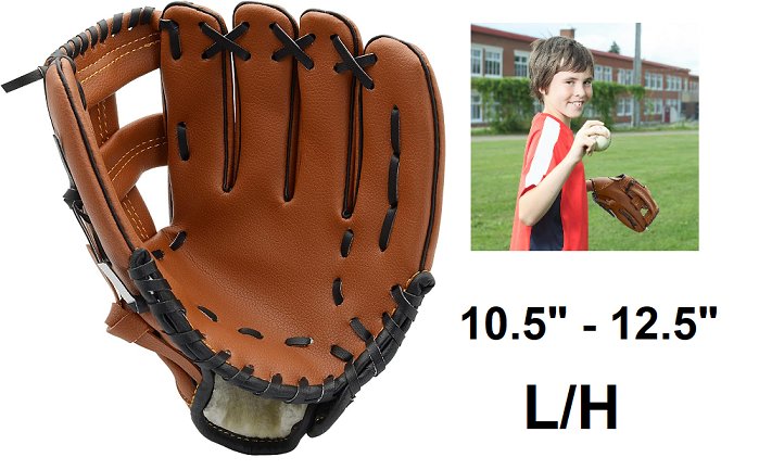YOUTH BASEBALL/SOFTBALL GLOVE - 10.5" - 12.5" - LEFT HAND - BROWN