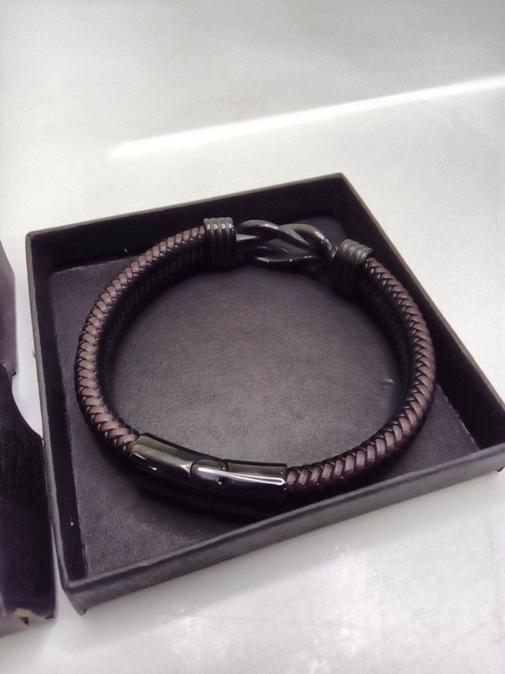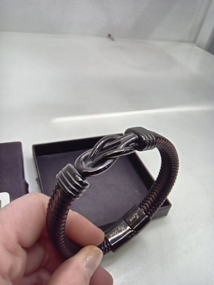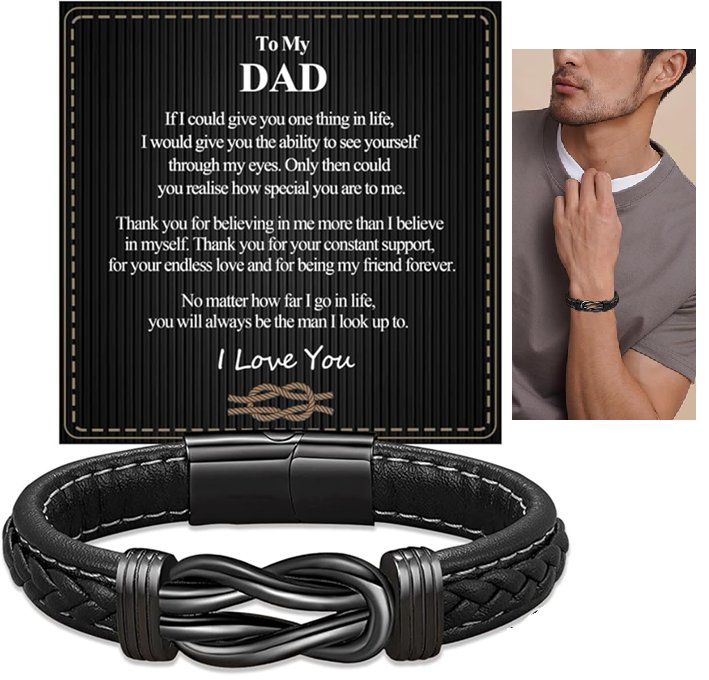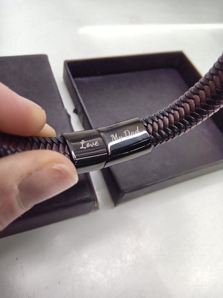 mens BOCHOI leather braided "love you dad" gift bracelet - black/brown