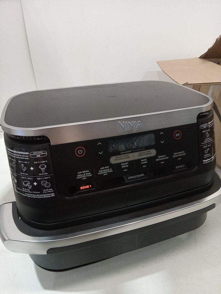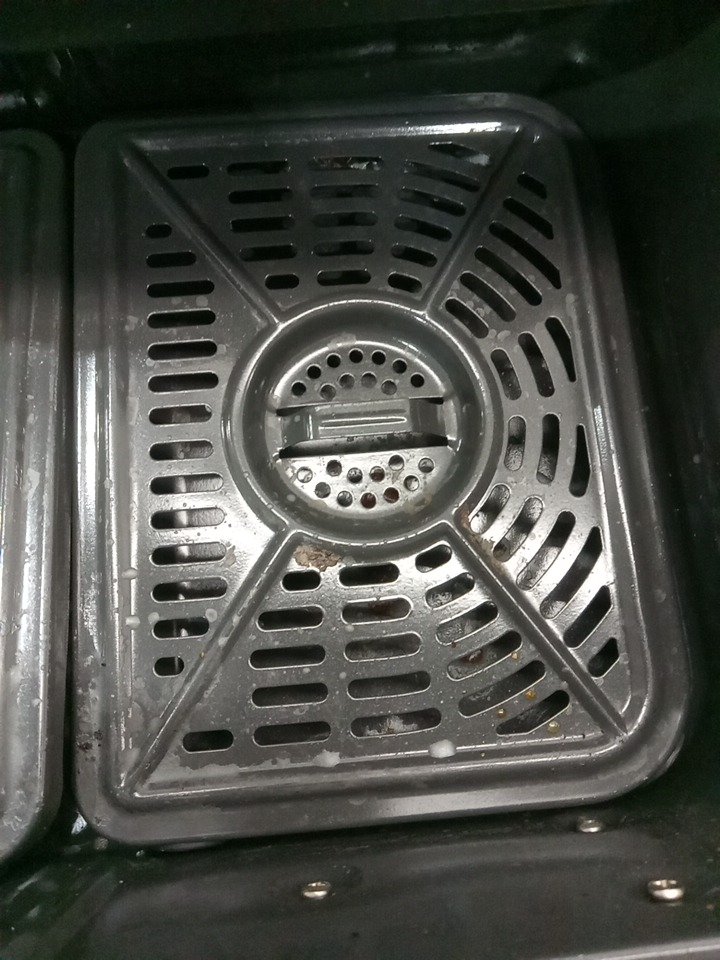 The bottom corner is cracked. Grease/debris on the inside from previous use. Missing the divider. Tested for power only.