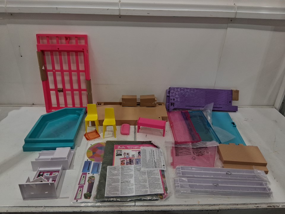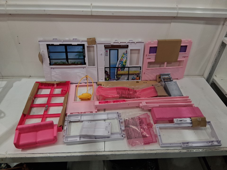 75PC Barbie Dreamhouse Dollhouse With Accessories & Wheelchair Accessible Elevator - pink/white (model: GRG93-DN2A)
