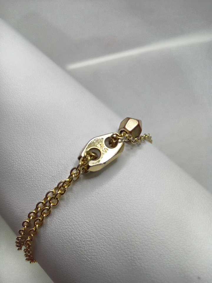 braclet has been previously used, chain is damaged and missing the end piece for the adjustment, see photo scuff marks on charm & sliding clasp