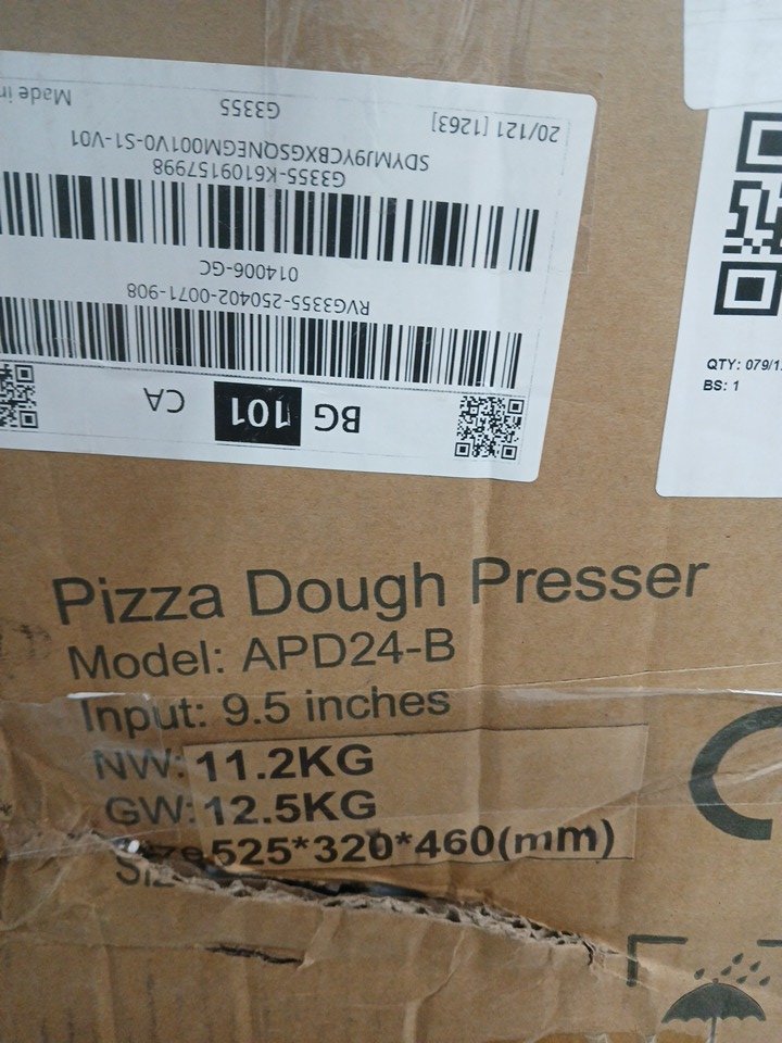 VEVOR MANUAL PIZZA DOUGH PRESS - COMMERCIAL PIZZA PASTRY SHEETER - 9.5" - silver (MODEL: APD24-B)