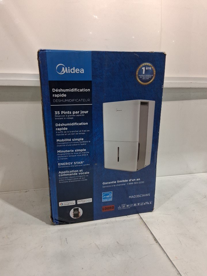 MIDEA EASYDRY DEHUMIDIFIER with AUTO SHUT-OFF, TIMER & WHEELS - 3000sQ.FT, 35PT - WHITE (MODEL: MAD35C1AWS)