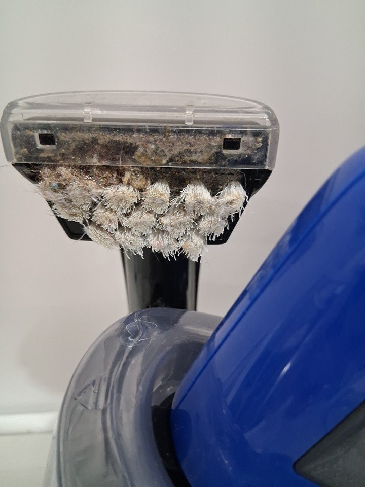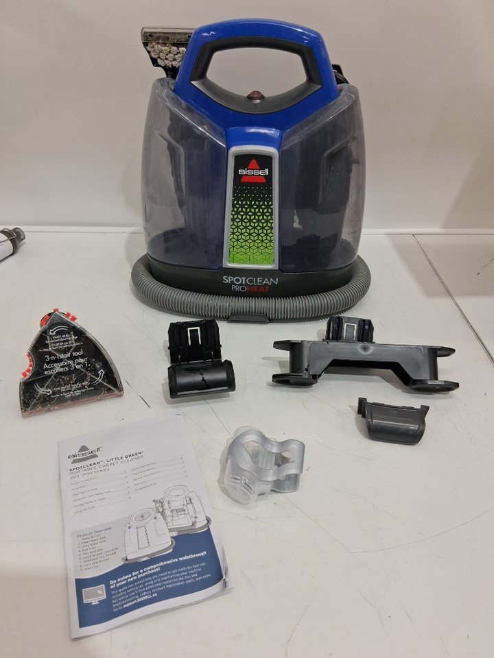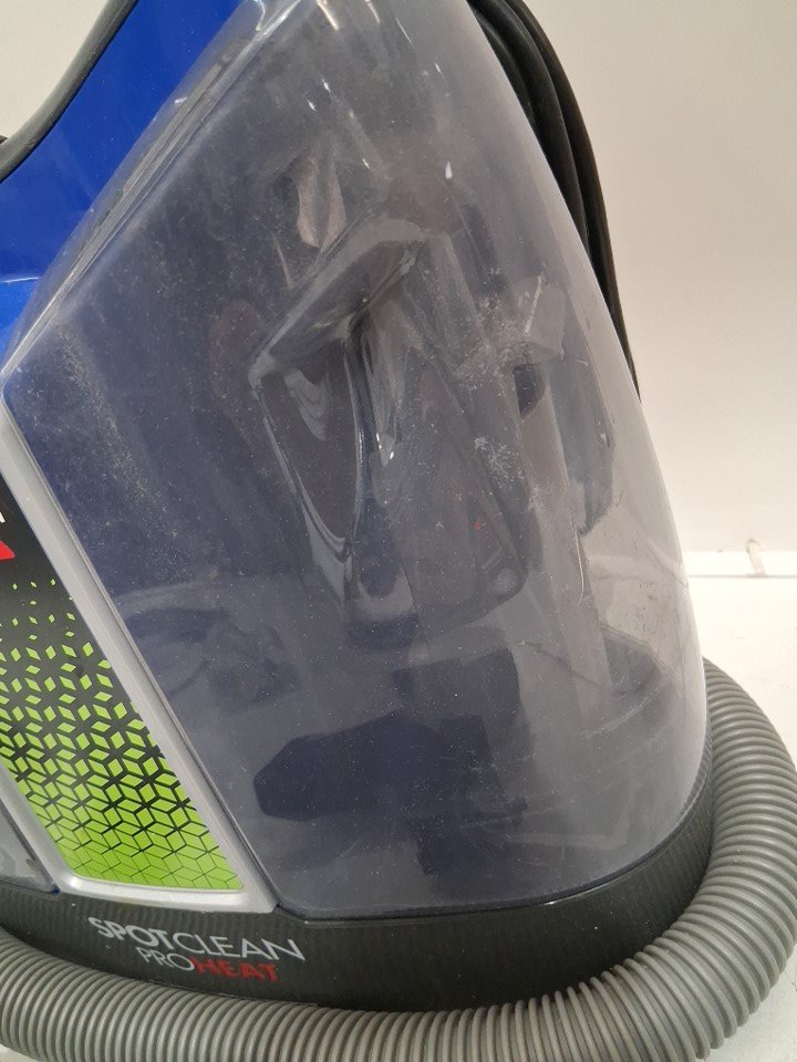 this does have dirt and debris both in the brushes and in the dirty holding tank, and water spots in the clean water tank. tested for power.