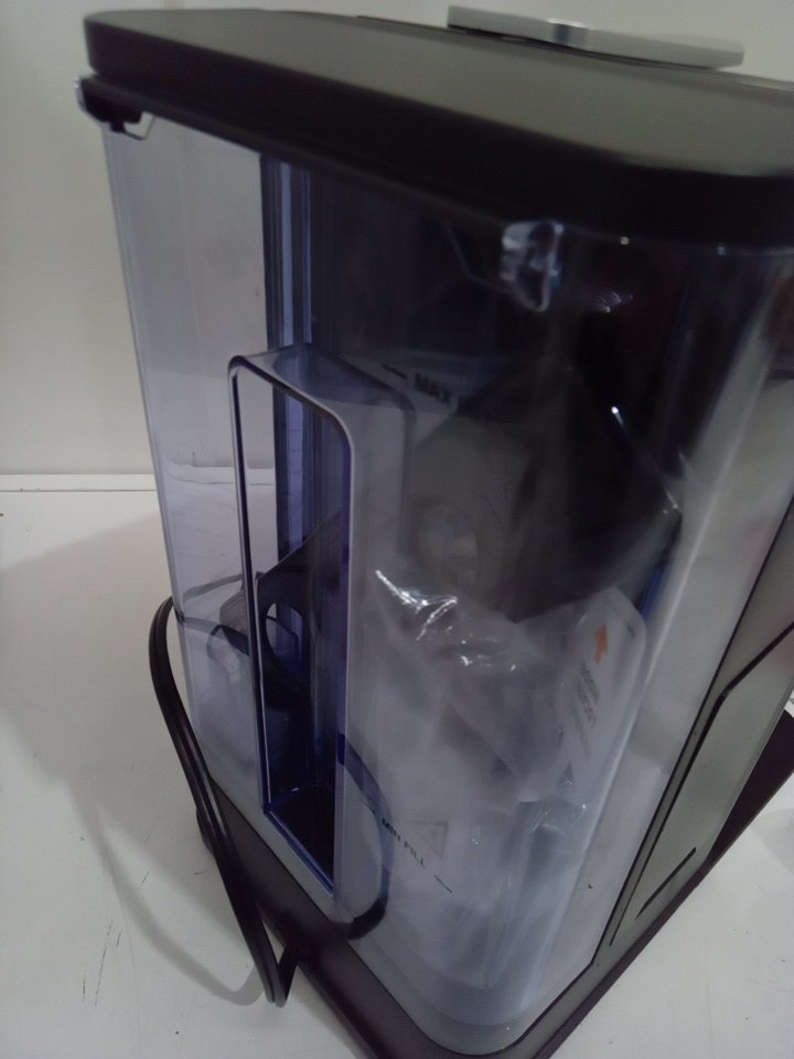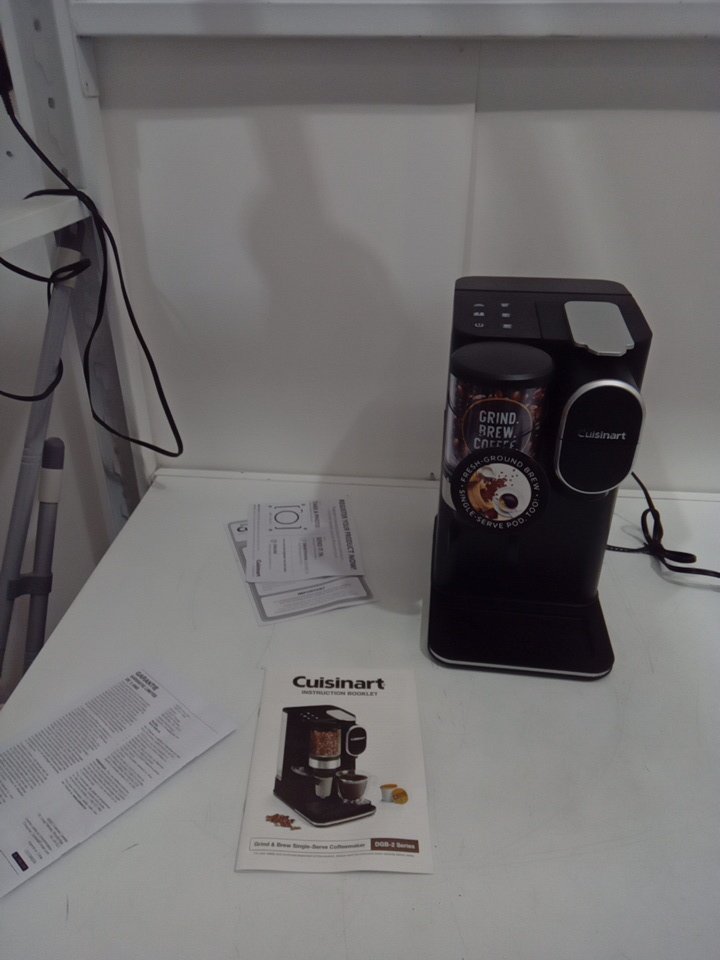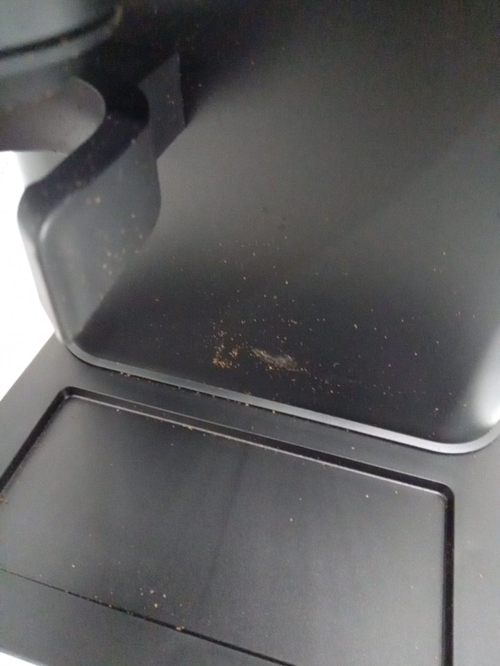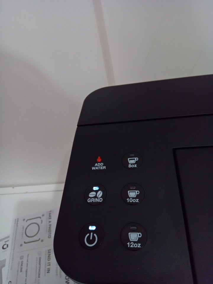 tested for power. appears to have some coffee grinds on the front of the machine.