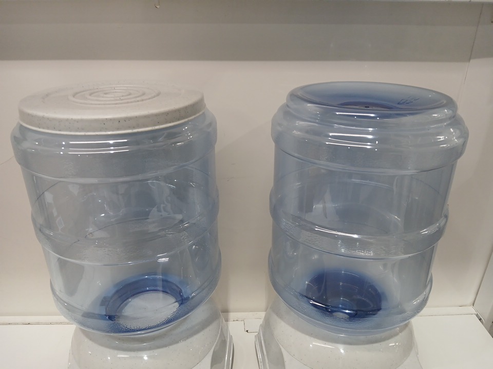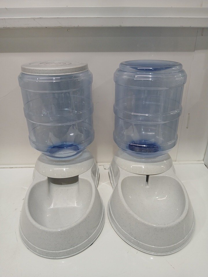 2pc AMAZONBASICS GRAVITY PET FOOD FEEDER AND WATER DISPENSER BUNDLE SET - 9.5L/3.5gal(LARGE) - blue/grey (MODEL: ‎11021/11022-APL)