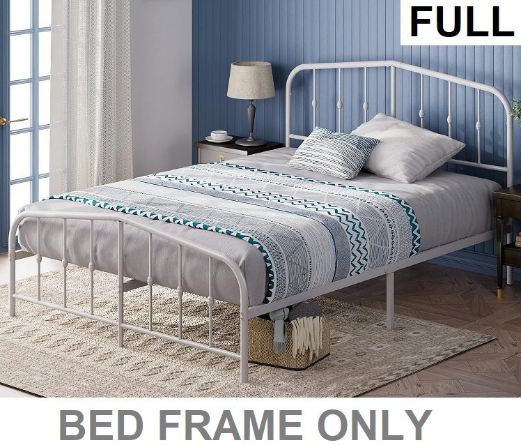 zinus heidi metal platform bed frame with headboard - full - white (model: ZU-FBMMH7-42F)
