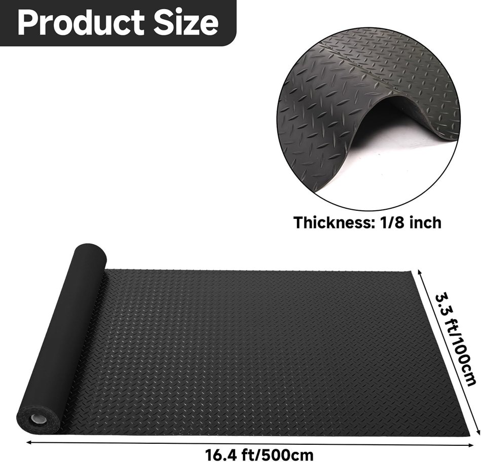 GOOFCXO HEAVY DUTY INDUSTRIAL NON-SLIP RUBBER MAT - 16.4FT X 3.3FT - BLACK
