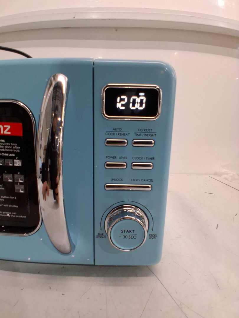 There is just a bit of tape residue on the glass plate due to the way the item was shipped, everything else looks new. Tested for basic power.