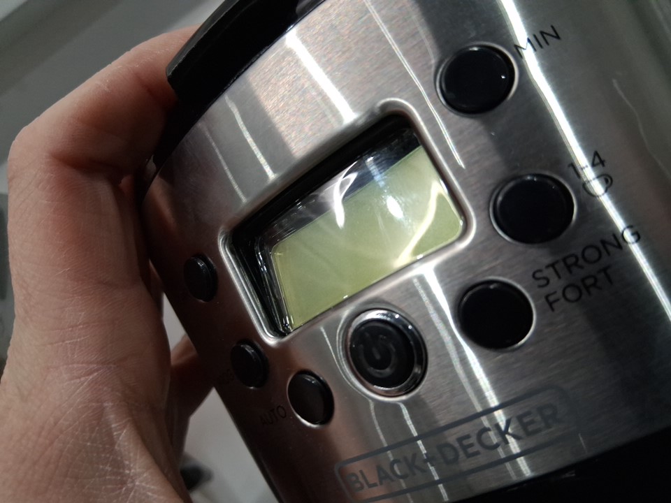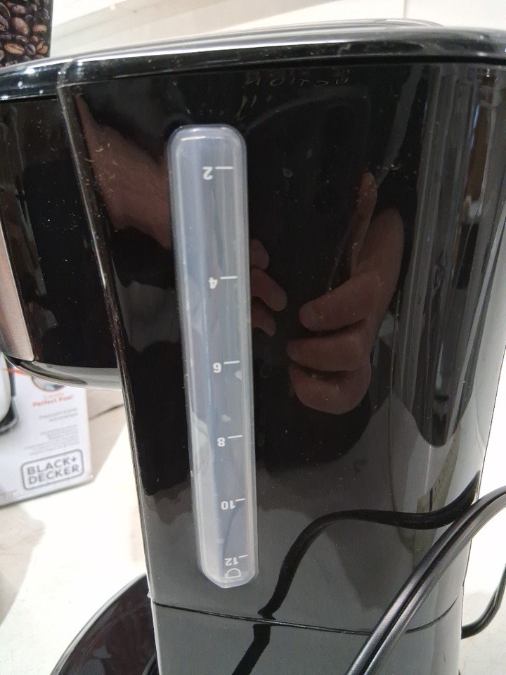 item has coffee / water marks indicating prior use item has a manufactory defect water scale was installed upside-down / screen seems to be pushed back a bit please see photos