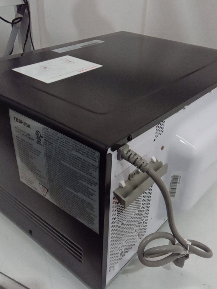 tested for power and function. appears to have some food debris on the inside of the microwave and has a food scent (See photo)