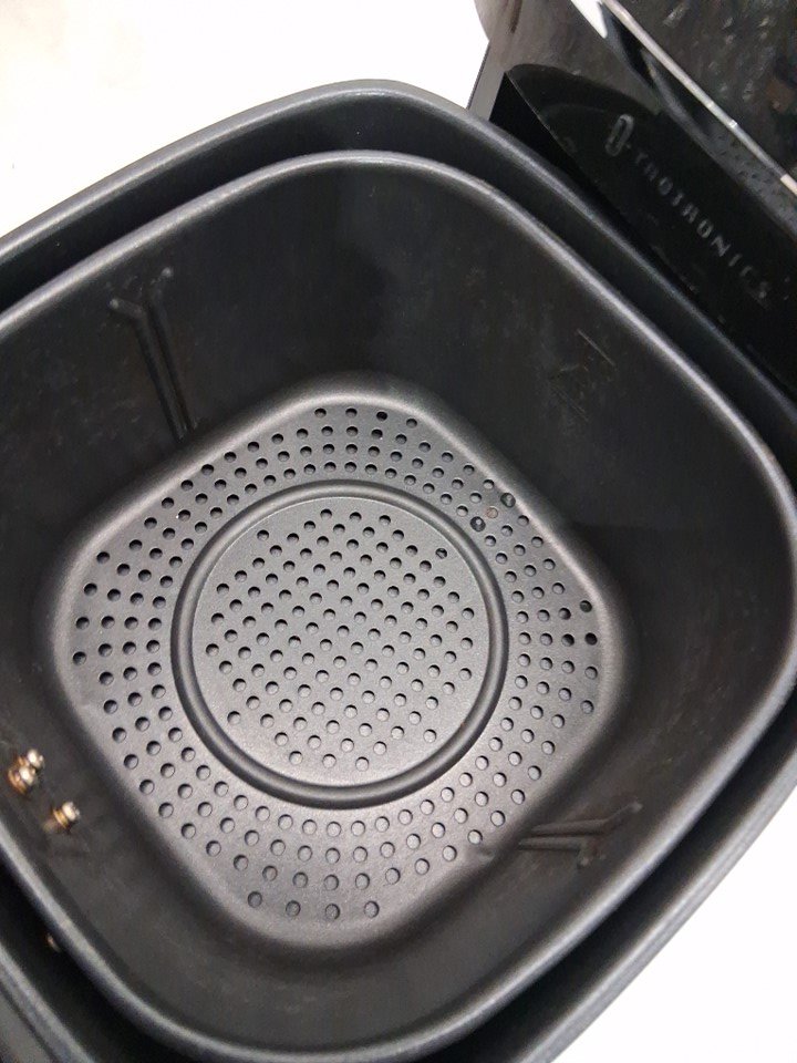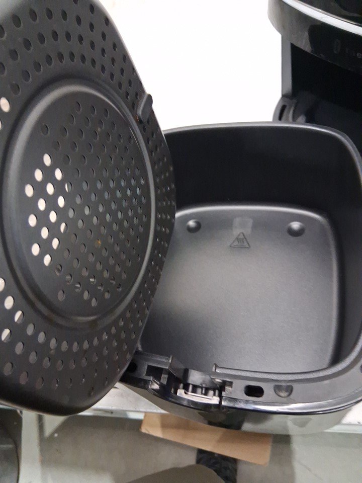 Light dirt/grease in basket from prior gentle use- The front of the basket is bent slightly and has a small gap when closed- item still functions (see photos)