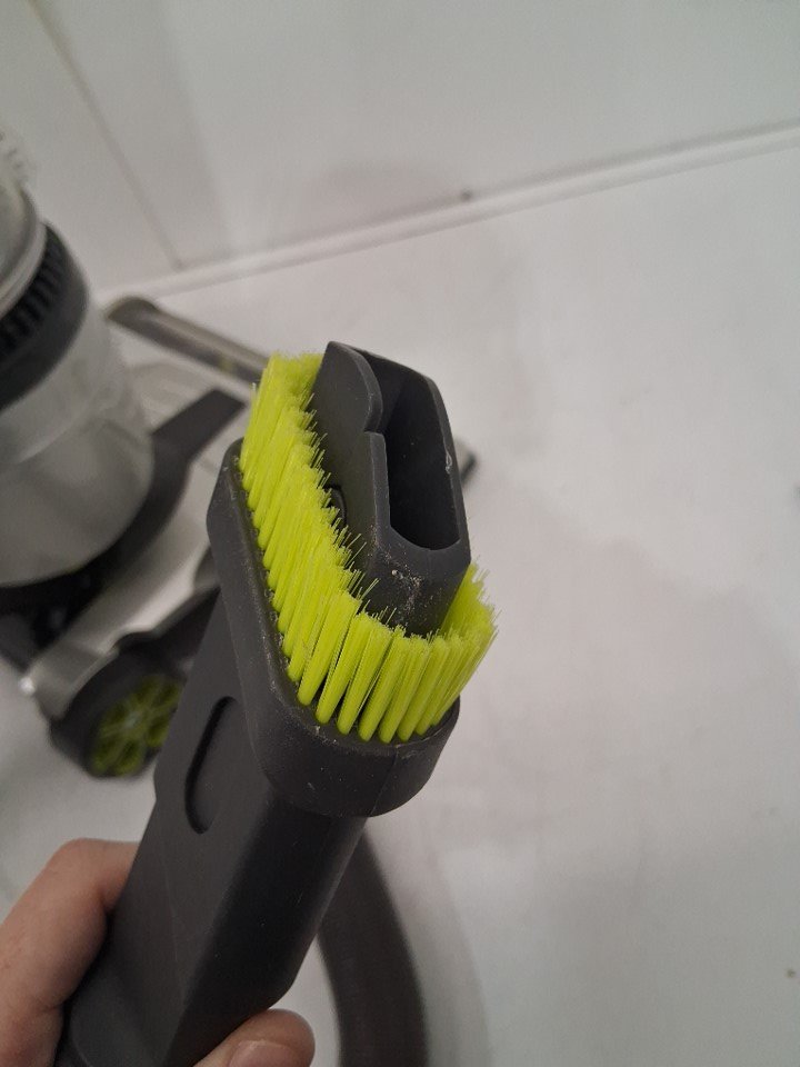 vacuum has hair and dust inside and scuff marks on it. Please note that spin brush doesn't spin, may need to be cleaned