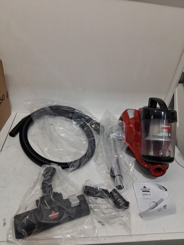 BISSELL ZING II BAGLESS CANISTER VACUUM CLEANER WITH CREVICE TOOL - RED/BLACK (MODEL: 21565)