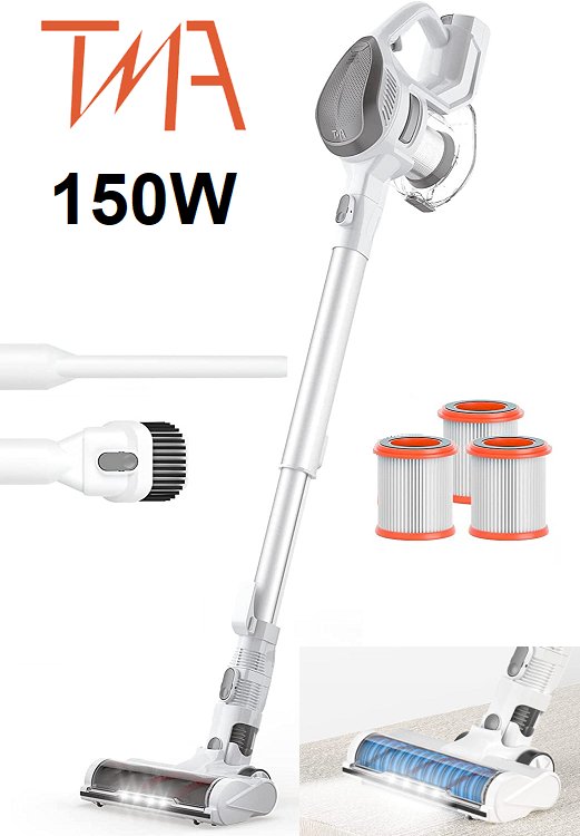TMA 6-In-1 Cordless Vacuum Cleaner - Rechargeable Stick Vacuum with 3 Filters - 150W - White (Model: T150)