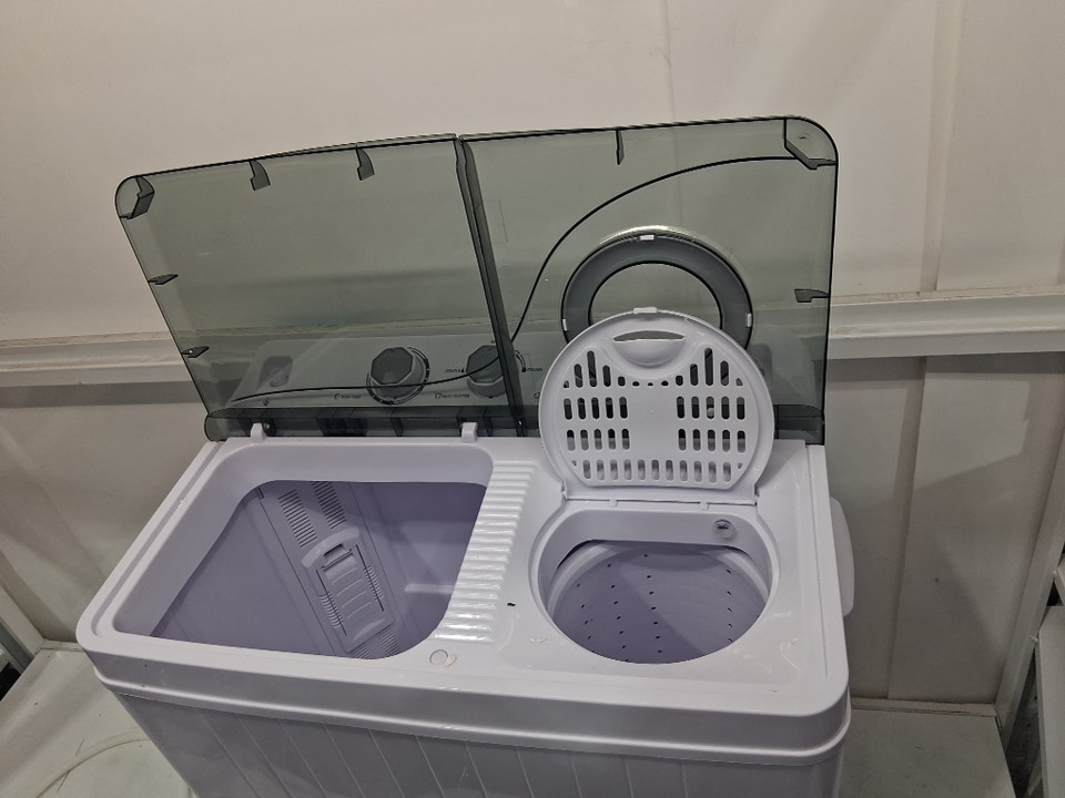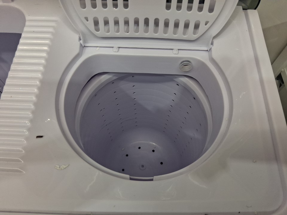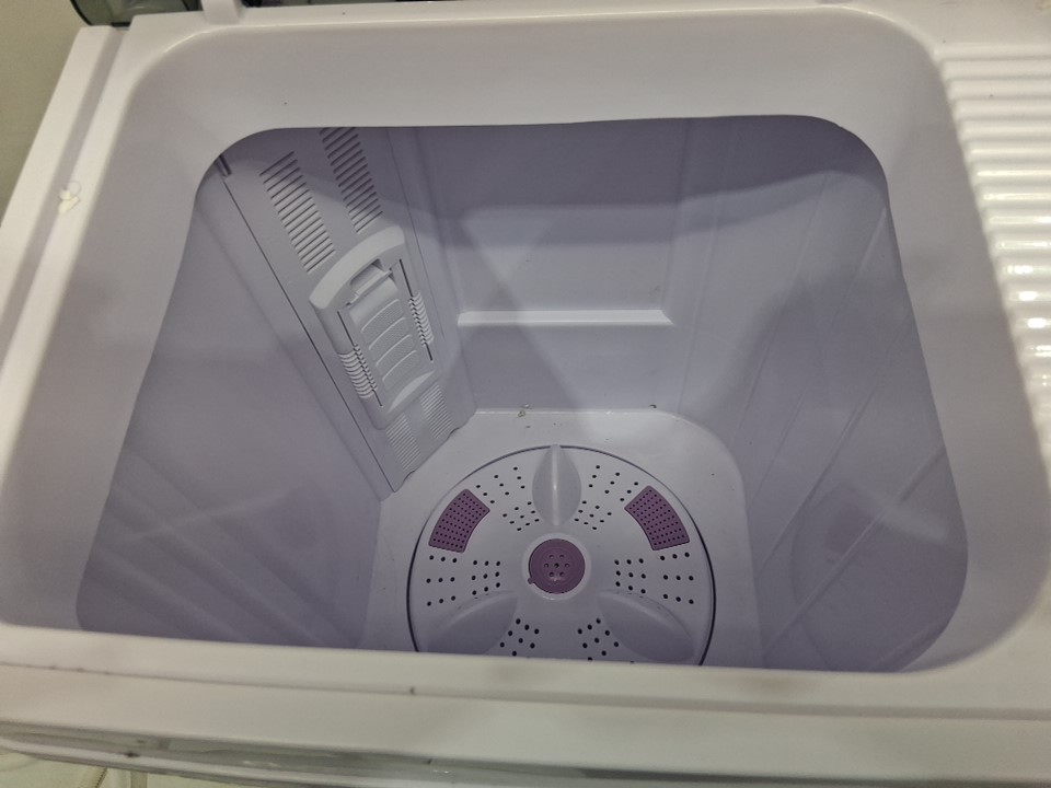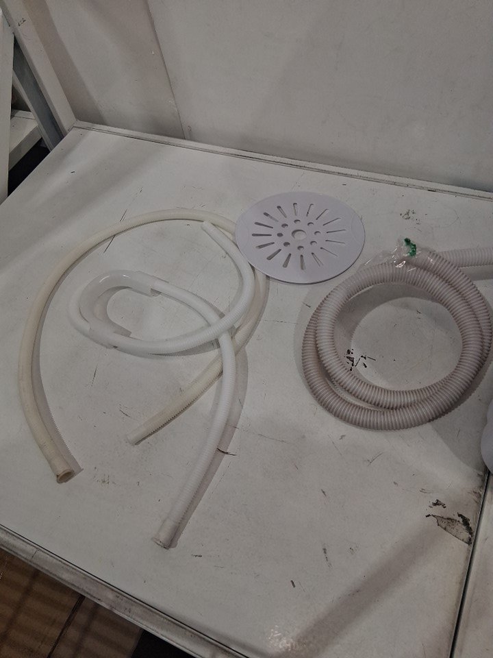 Tested for power. Unable to test for function due to nature of product. Residue, presence of water, and odor of laundry detergent/must indicating previous use (See photos).