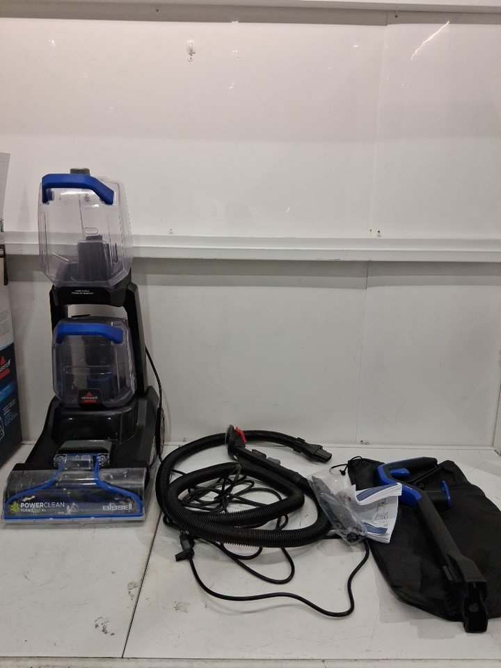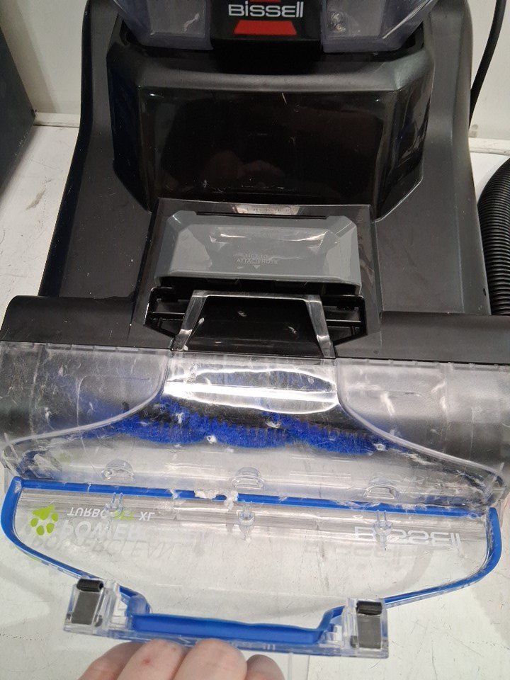 Product has some water in both tanks as well as some debris and hair throughout (See photos) Product is missing cleaning solution Tested for power