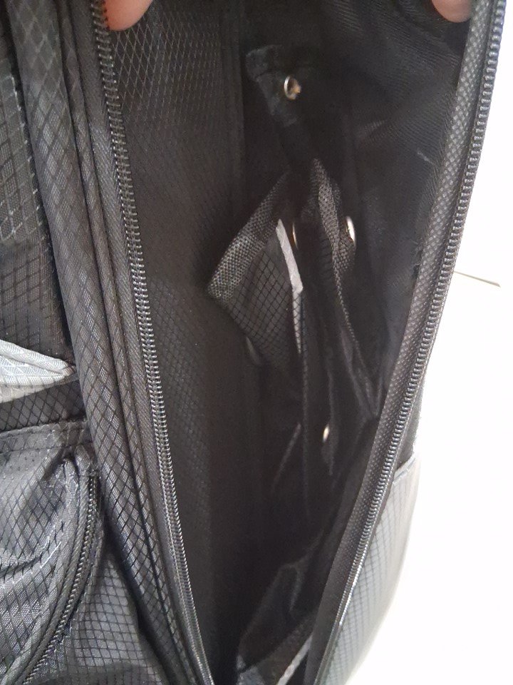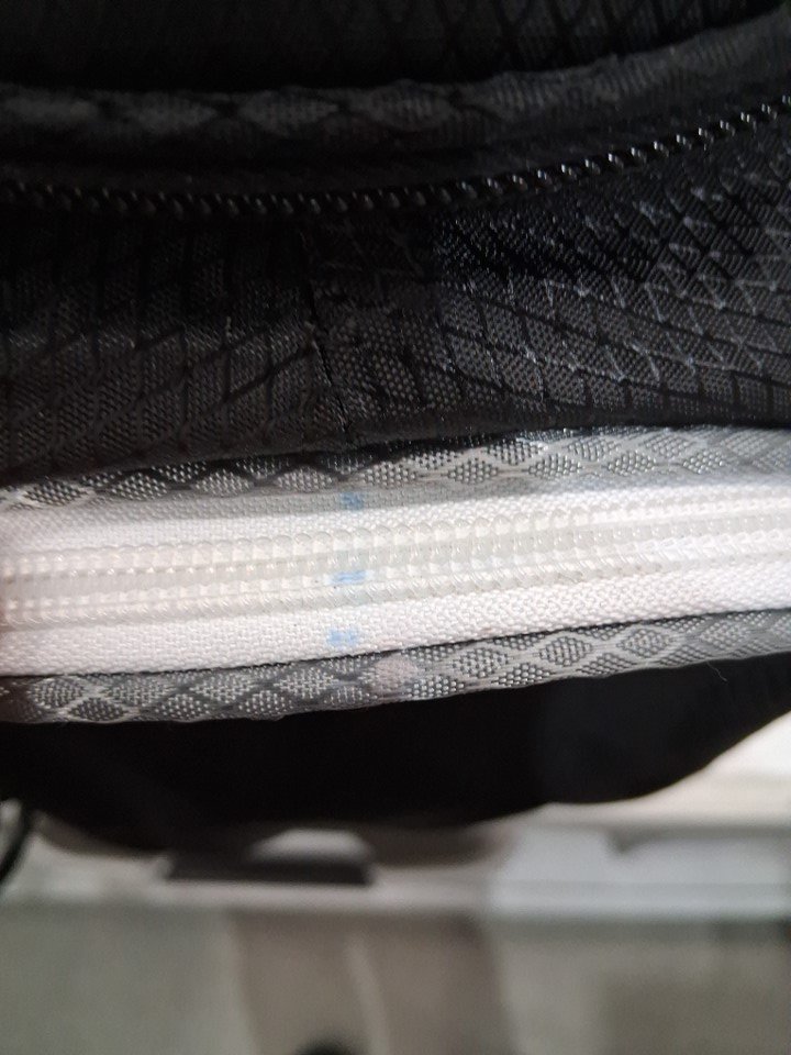 There is a small blue stain near the zipper on one of the front pockets - see photos. Outside of this cosmetic issue, there are no apparent issues, damage, or signs of previous use.
