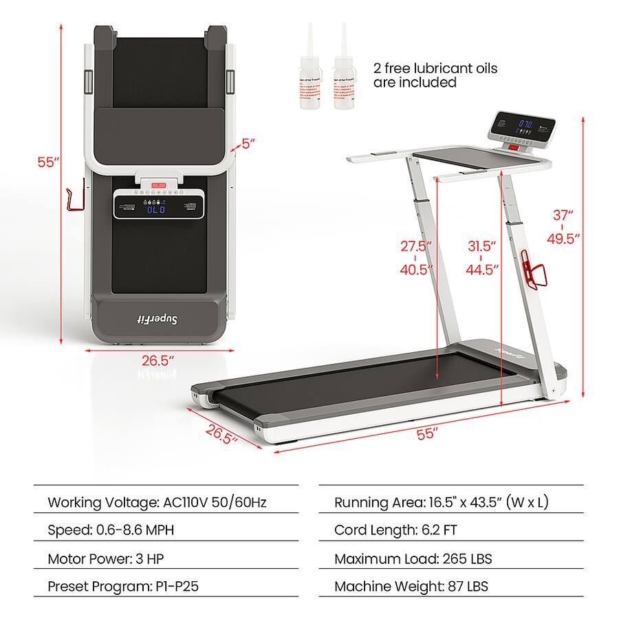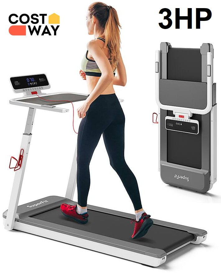 Costway Superfit Adjustable Height Folding Treadmill With APP Control Table Board - 3HP - 8.6MPH - Silver (Model: SP37860US-SL)