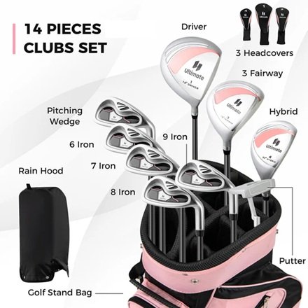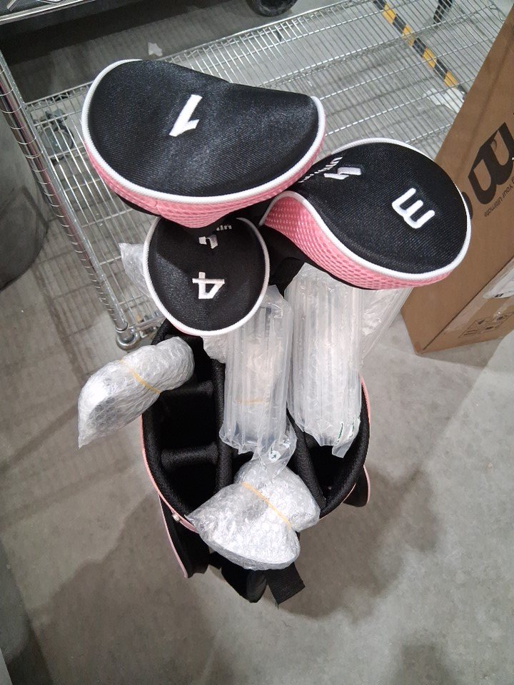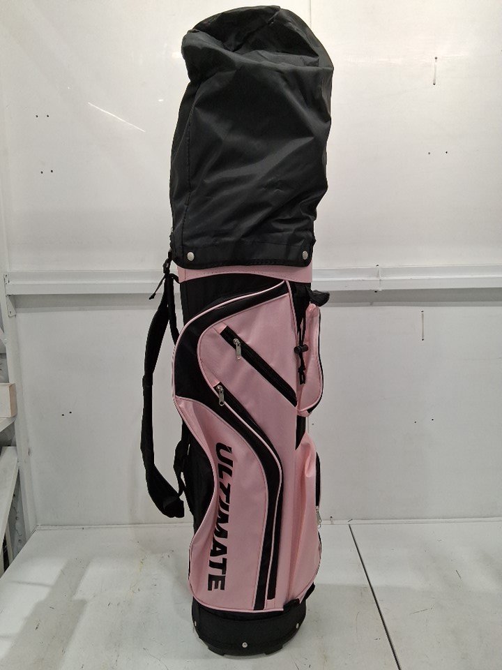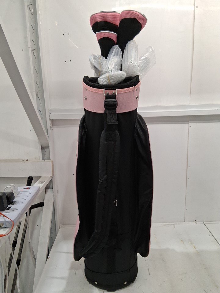 There is a small black mark near the top of the bag - see photos. Otherwise, the bag and all clubs appear to be in new condition.