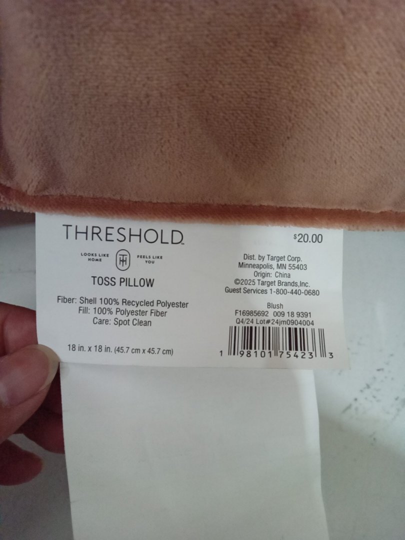 Threshold Washed Cotton Velvet Square Toss Pillow - 18" x 18" - Blush Pink