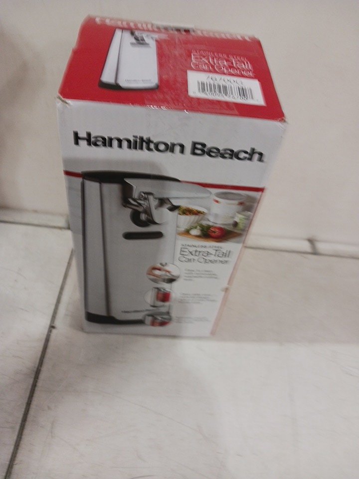 Hamilton Beach Electric Automatic Can Opener with Easy-Clean Detachable Cutting Lever and built in knife sharpener - 10'' - brushed stainless steel (model:76700g)