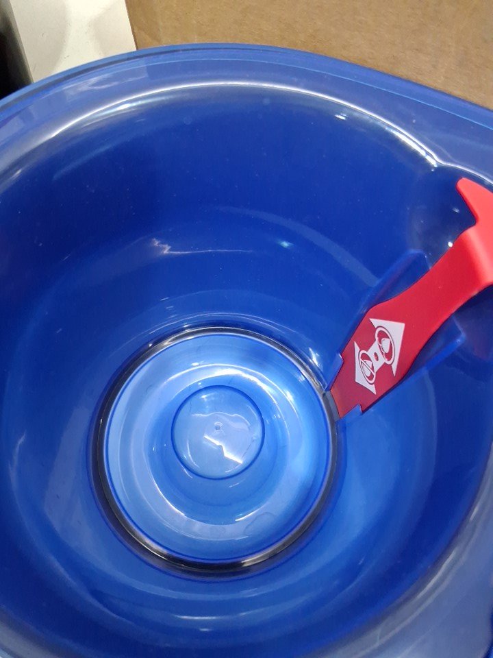 Has some soap smell and water residue in/on the surface.