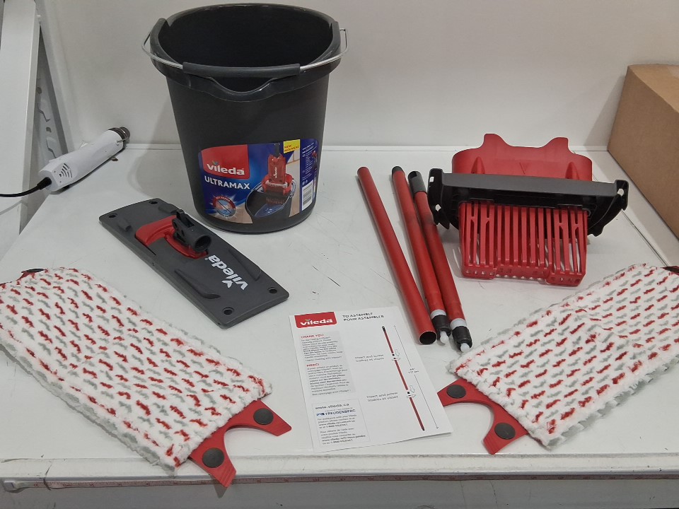 VILEDA ULTRAMAX FLAT MOP and BUCKET SYSTEM with 1 extra refill - 10L - RED/BLACK (MODEL: 161556)