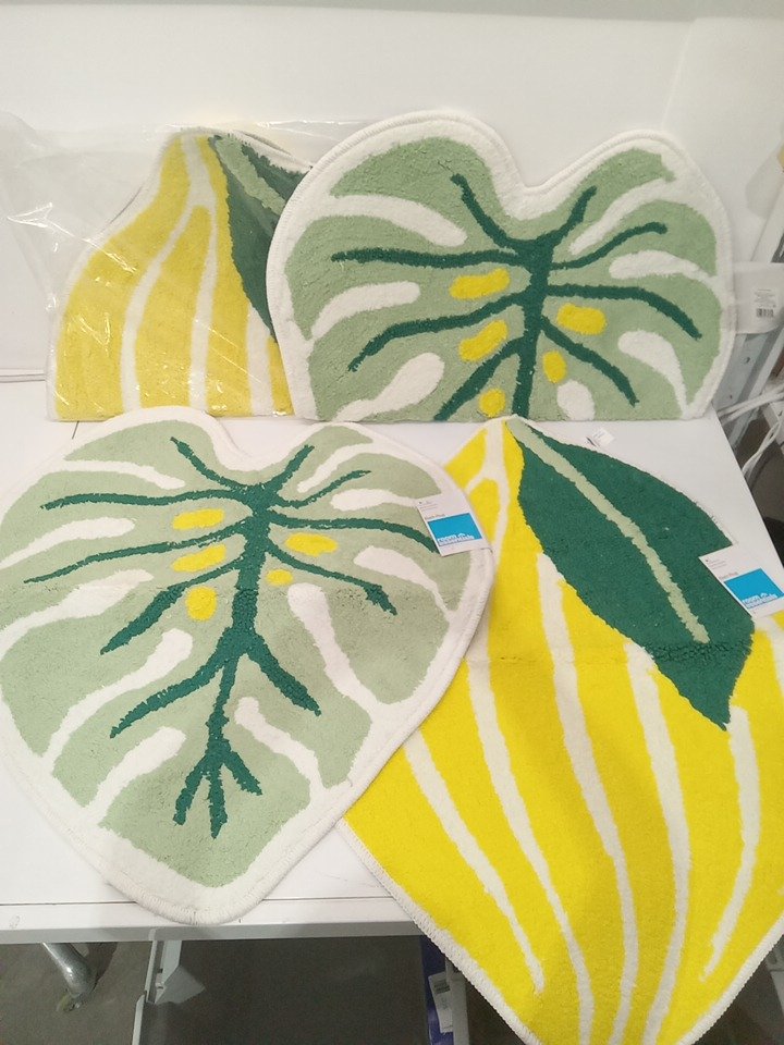 4 assorted room essentials Machine Washable Non-Slip Bath Rug - lemon: 23" x 30" / Leaf: 25" x 26"