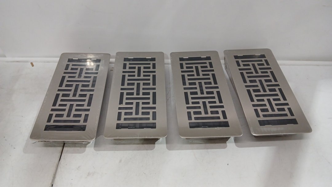 4pk Decor Grates Oriental Floor Register - 4"x10" - Brushed Nickel (model: lAJH410-NKL)